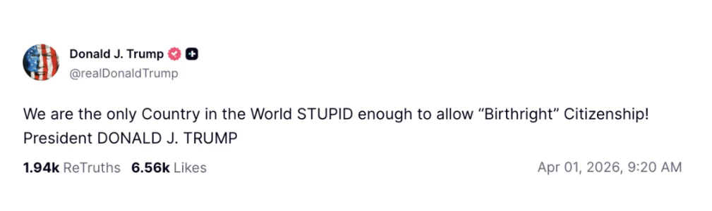 当地时间4月1日,美国最高法院正式就出生公民权案举行口头辩论。当这场世纪诉讼源自特朗普上任签署的第14160号行政令——该令试图推翻自1868年确立、已延续158年的“凡在美领土出生即自动获得公民身份”的法律。